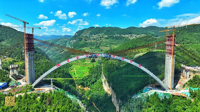 世界最大跨径悬浇拱桥丨古金高速公路水落河特大桥主拱圈合龙
