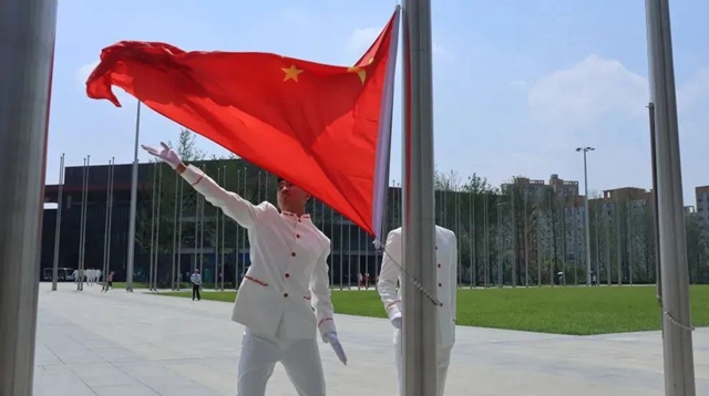 成都大运村升起首面国旗,升旗手是在泸高校的他们→