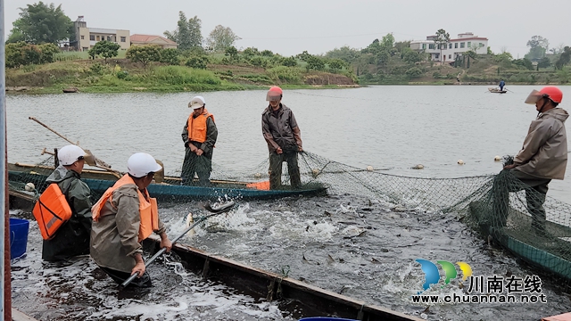 泸县立石镇三溪口水库:人欢鱼跃捕鱼忙