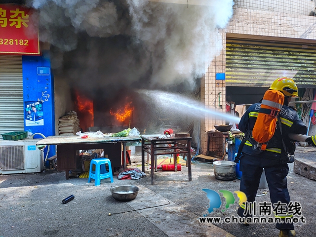 龙马潭区一菜市场起火 消防15分钟将火扑灭