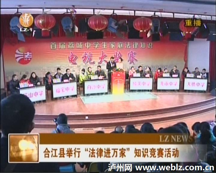 《泸州新闻联播》消息:日前,合江县举行了“法律进万家”首届荔城中学生家庭法律知识竞赛活动。