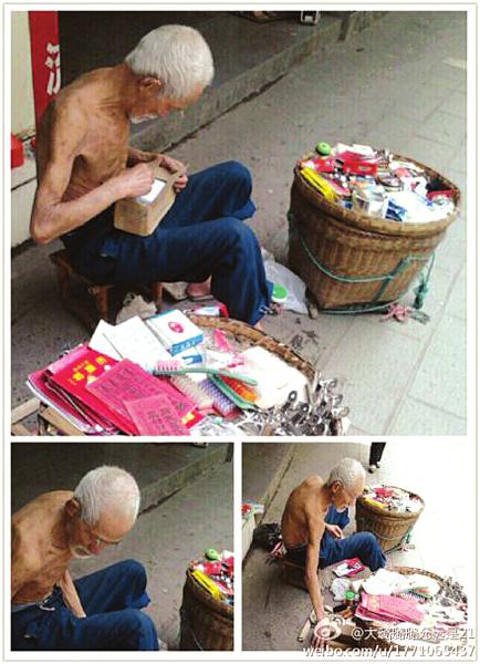老人说:“我身上长了疥疮,闲下来病痛就多,出来摆摊做生意,好的时候一天能够卖上百元,挣点零花钱。”