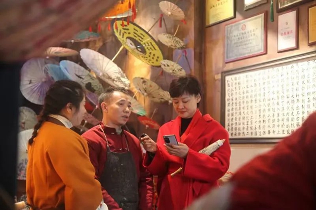前央视著名主持人李小萌探访直播分水油纸伞