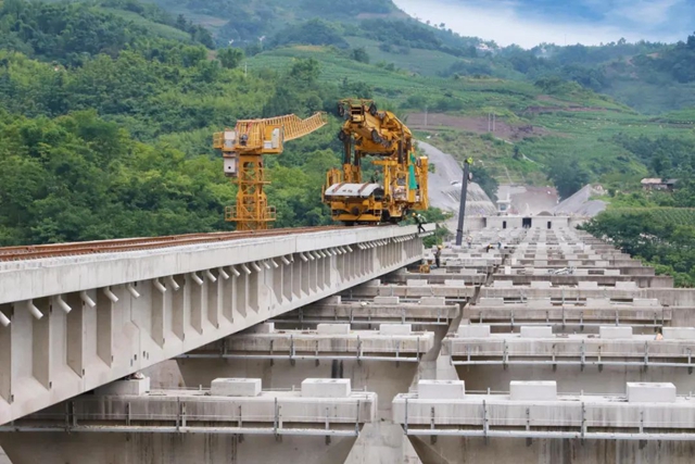 叙毕铁路兴文段开始铺轨架桥