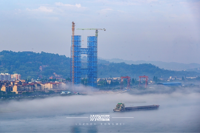 两岸扣塔安装忙丨飞“阅”泸州长江五桥